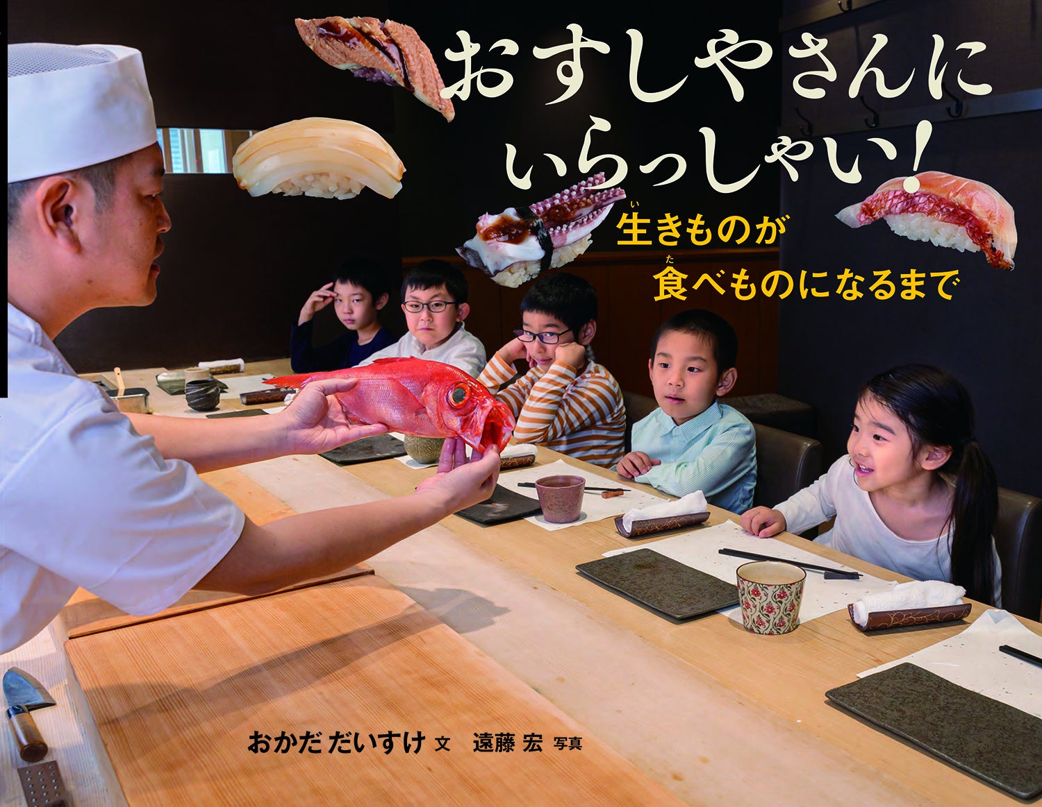 児童書『おすしやさんにいらっしゃい!生きものが食べものになるまで』(岩崎書店)をもとに、魚の特徴や部位の名前を解説。最後はお寿司になって登場します。「命を貰って生きている自分を大切に」というメッセージを贈ります。
