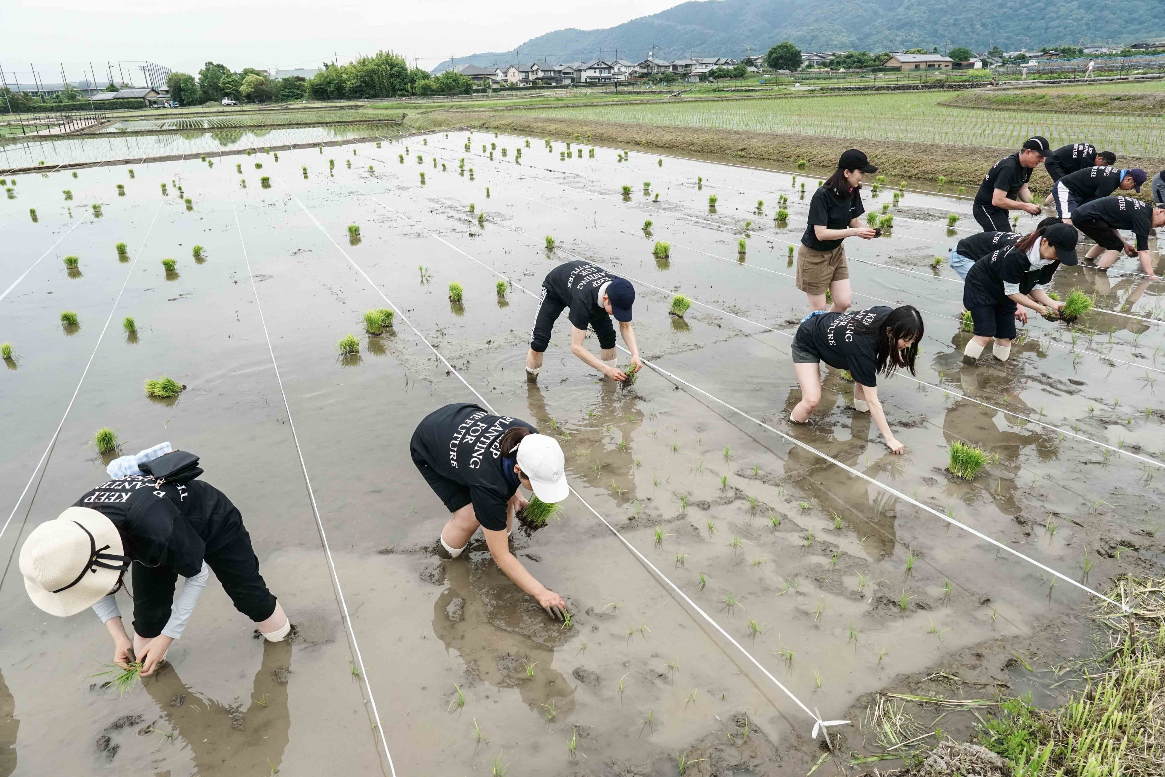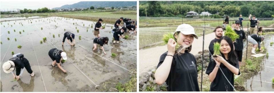 プロジェクトのキックオフとして、6月6日に行った田植えには約40名のホテルスタッフが参加しました。酒米作りの地として選んだのは、「歴史的風土特別保存地区」にも指定されている京都市右京区嵯峨地区です。国土交通大臣によって指定された「歴史的風土保存区域」の中でも、厳選された地域として特別指定を受けた美しい土地です。