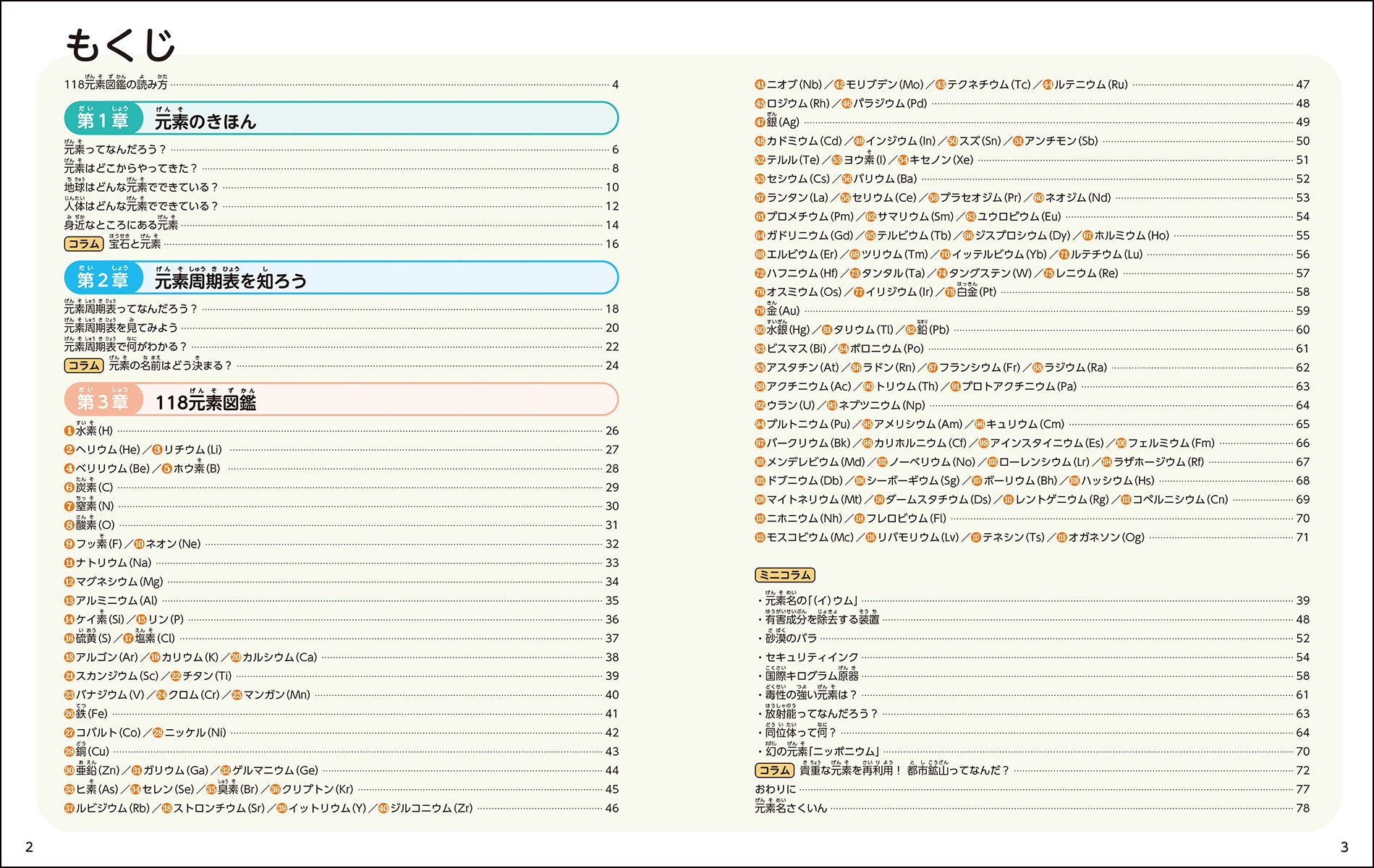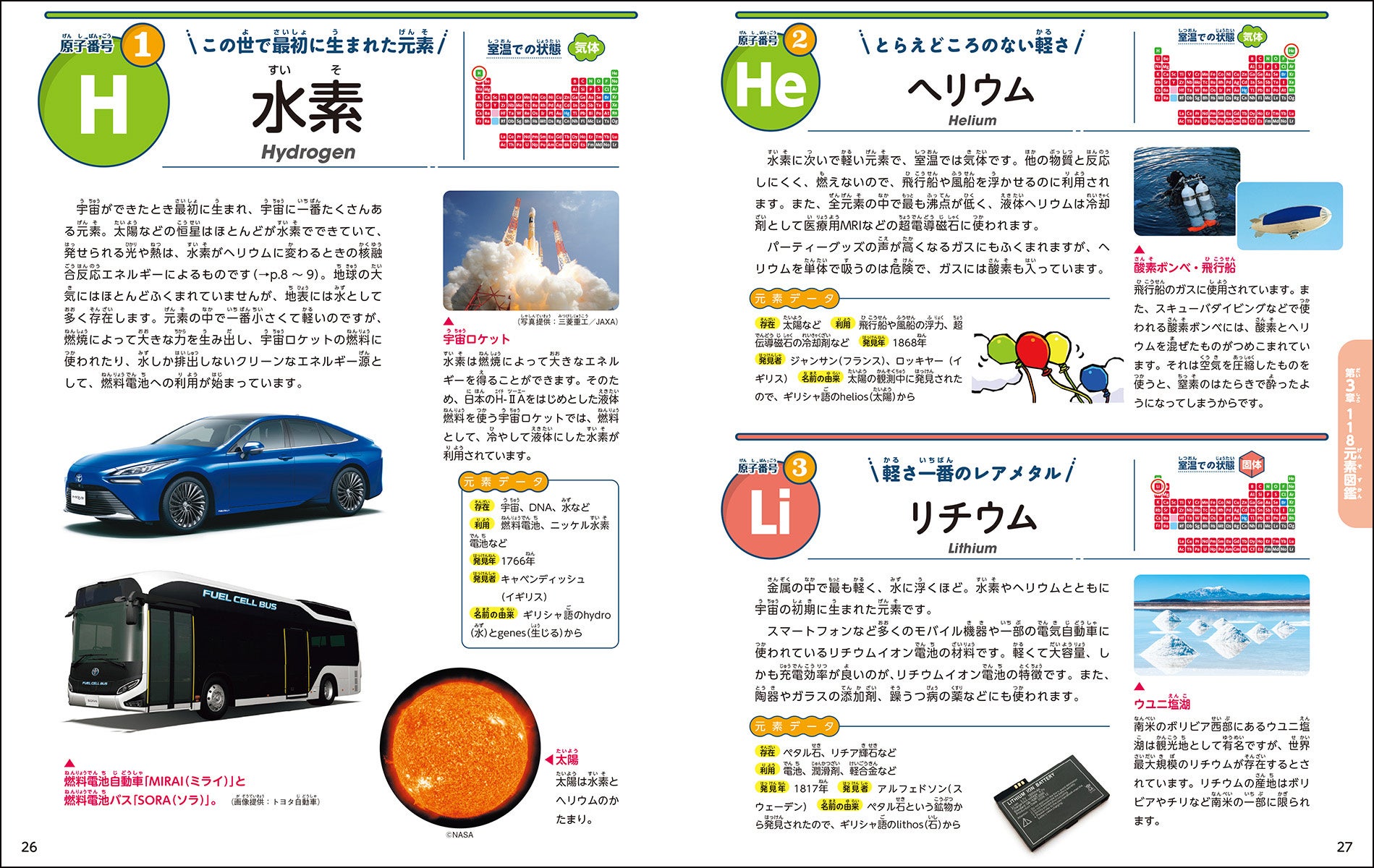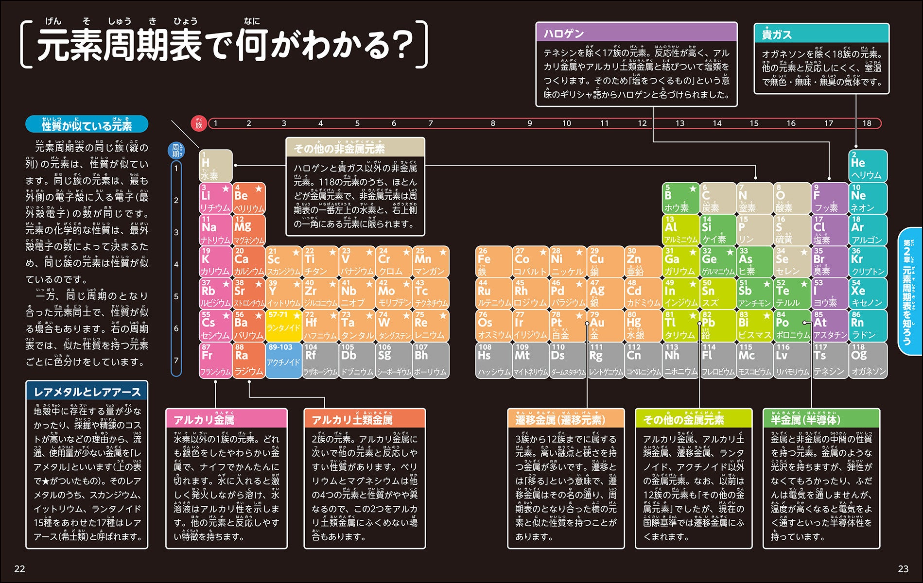 そして、現在までに見つかっている118種すべての元素を網羅して紹介しています。
