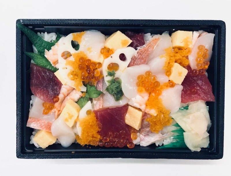 運がつくレンコンと邪気払い食材の鯛(金目鯛)を使用した、彩り豊かな海鮮ちらし。