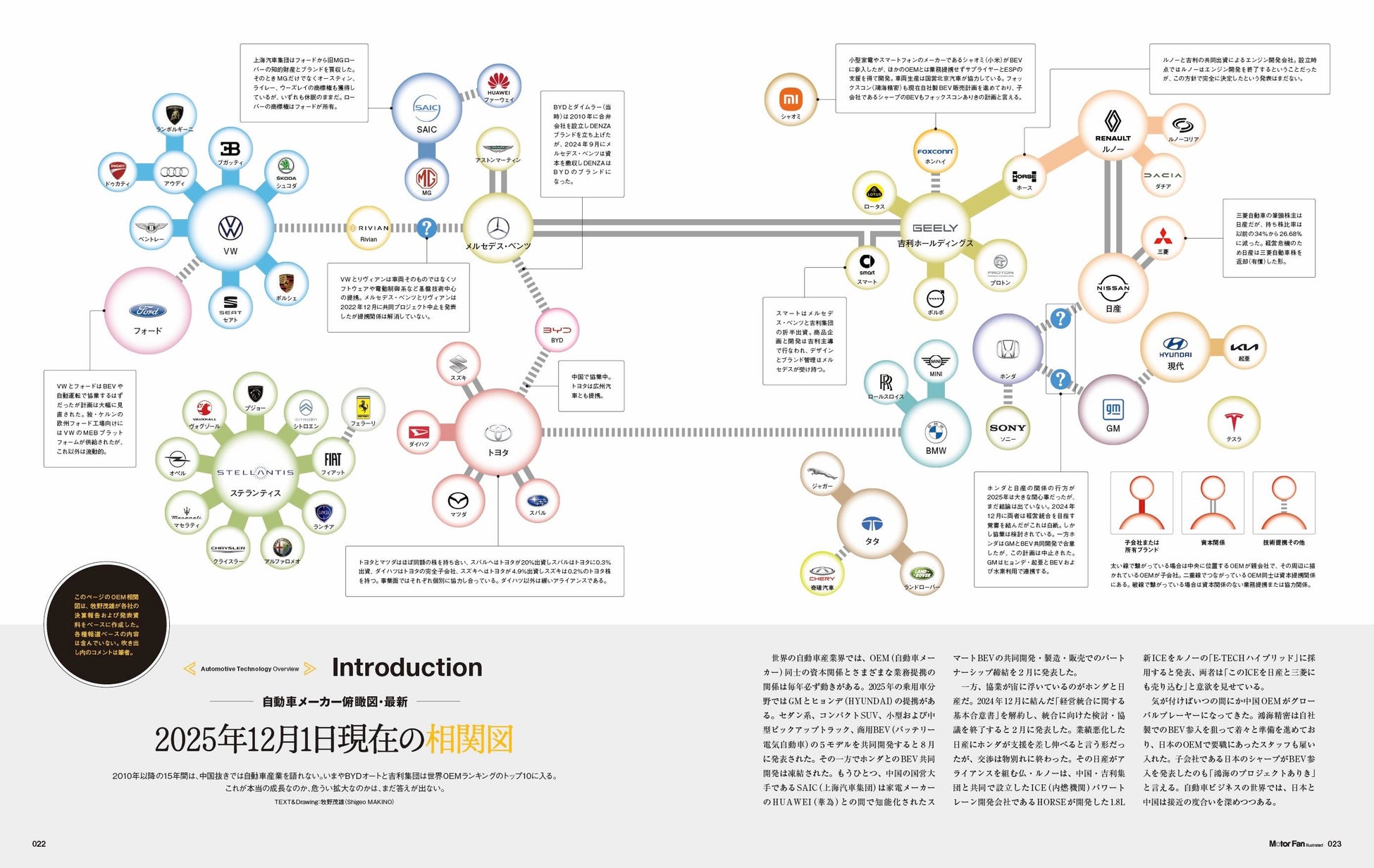 イントロダクションとして世界の自動車メーカーの提携や資本関係をまとめて俯瞰的に紹介した後に、パワートレーン、ボディ&シャシー、自動運転&ADASという3テーマに関して、2025年に自動車業界で注目すべき技術的トピックを改めて解説。