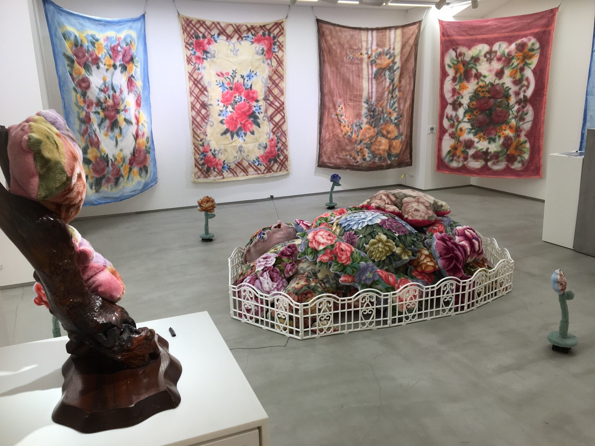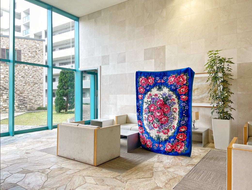 おばあちゃんやおじいちゃんの家にあったようなロココ調の花柄毛布をモチーフにした、立体作品やインスタレーション作品を制作しております。