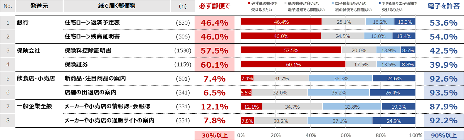 1.銀行や保険会社からの通知物は「必ず紙の郵便で受け取りたい」という回答が多数。