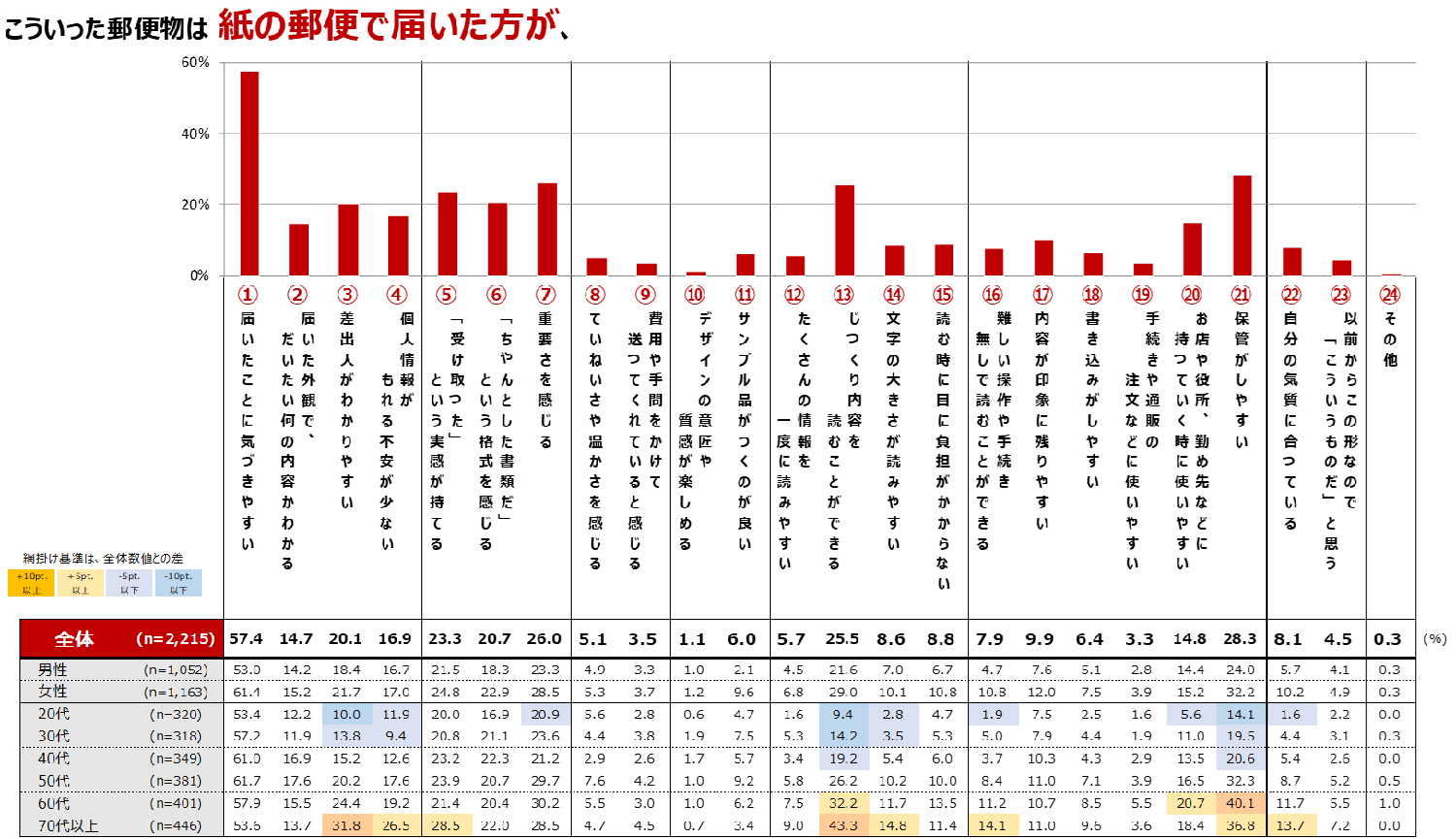 調査対象:全国の、自分宛ての郵便物を1週間で1通以上受取り、かつ開封している方3,000名(20代~70代以上の男女)