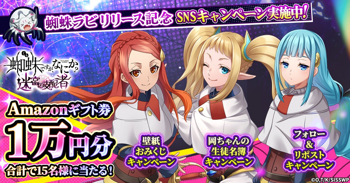 あなたを「蜘蛛ですが、なにか?」のキャラクターに例えたらどのタイプか分かるキャラ診断を実施します。結果をシェアした方の中から、後日Amazonギフト券1万円分が当たります。
