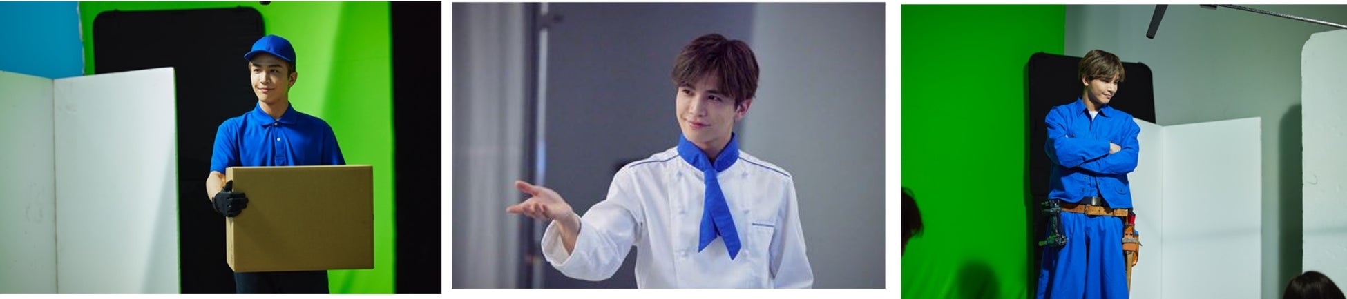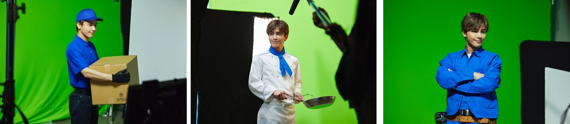 今回、岩田さんは「ドライバー/飲食/建築・土木」の社員役として、それぞれの制服に身を包み撮影に挑みました。撮影中は終始爽やかな笑顔を浮かべながらも落ち着いた様子で撮影に臨まれている姿が印象的でした。監督からの指示で「どうぞ」と手の平を上に向けるポーズを要望された際には、微笑みながら「どうぞ、寿司屋」と言い、周りを和ませる場面も。どの制服も笑顔で着こなす岩田さんに注目です。