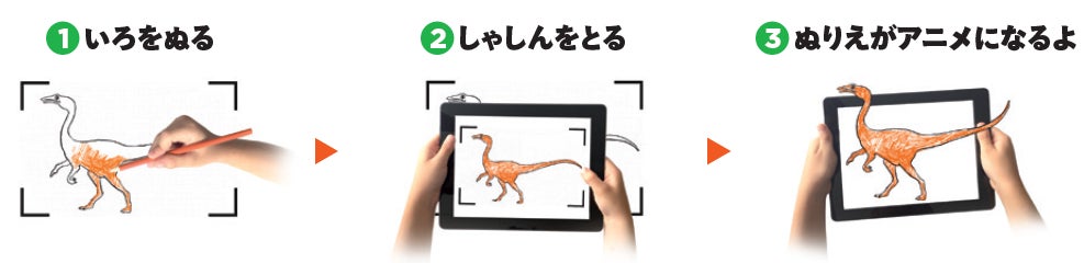 遊び方はとても簡単。無料のアプリをダウンロードして、ぬりえを撮影すると、ぬりえがアニメーションになって動き出します。