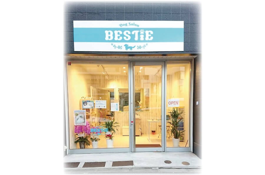 ワンちゃんとお客様に、またあそこへ行きたいなと思って頂けるような、笑顔溢れるお店にしたい!と言う思いでBESTIE(親友)/ベスティと名付けました。