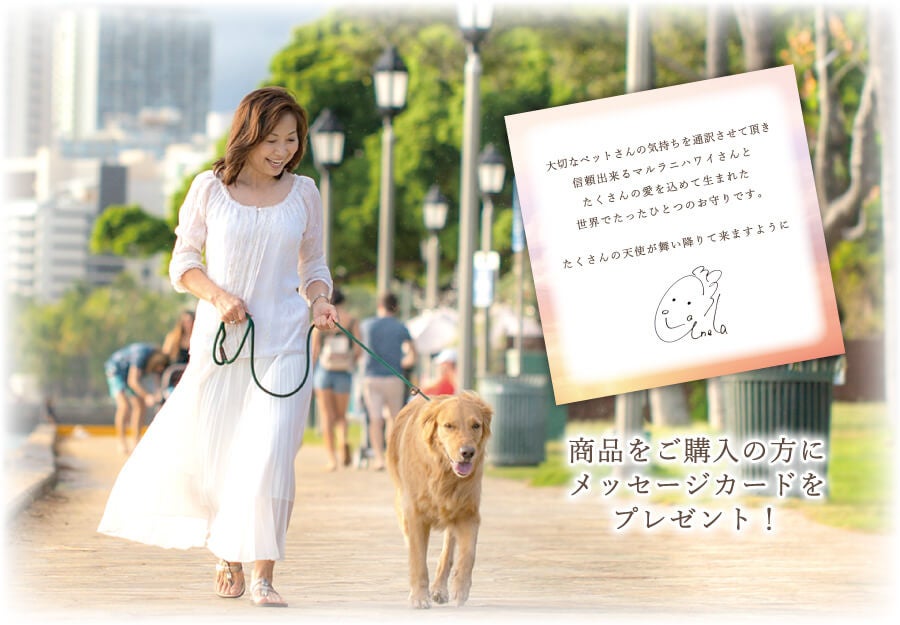 人と動物の通訳士として活躍するアネラさんと、ハワイ発祥の天然石アクセサリーブランド「マルラニハワイとのコラボレーション、完全オーダーメイドのお守りチャーム&ストラップの受注会を開催いたします。