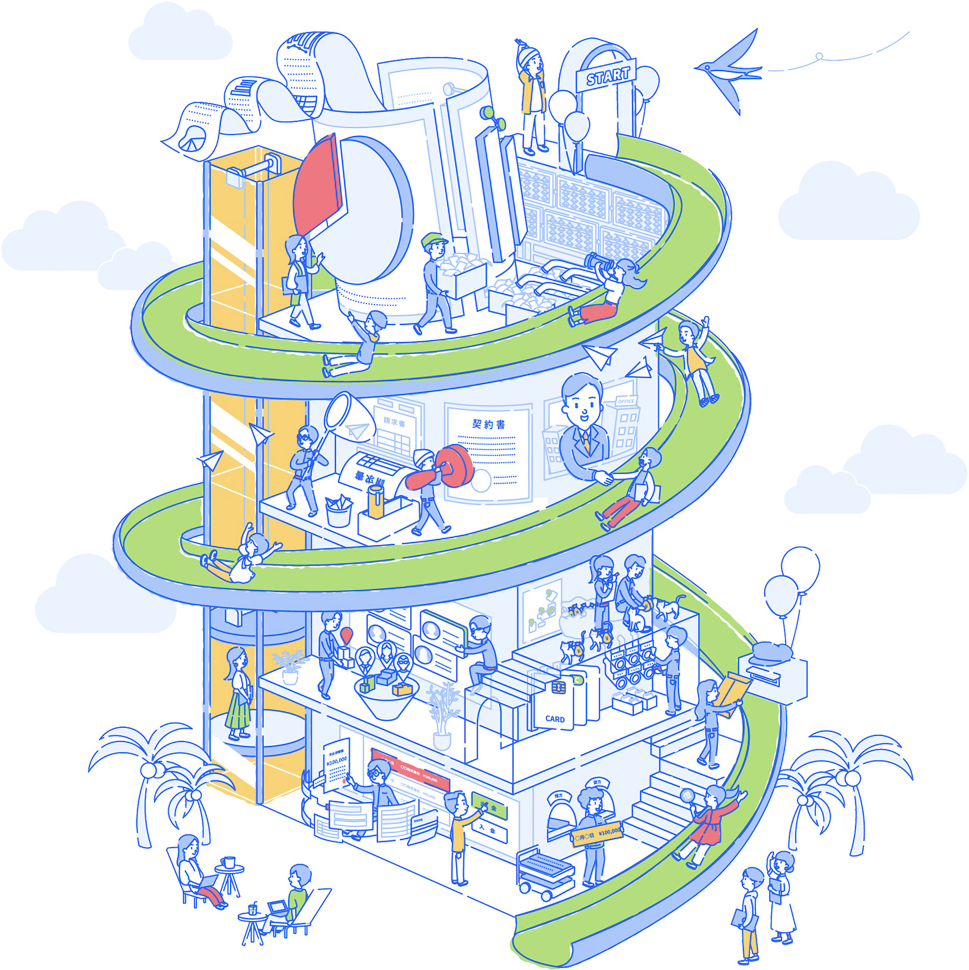 freeeは、2012年に創業してから個人事業主をはじめ上場企業まで、さまざまなスモールビジネスの皆様を支援して参りました。また、ミッション「スモールビジネスを、世界の主役に。」の実現に向けて、掲げたビジョン「だれもが自由に経営できる統合型経営プラットフォーム。」のもと、会計・人事労務・販売管理・金融などさまざまな領域でサービスを展開しています。