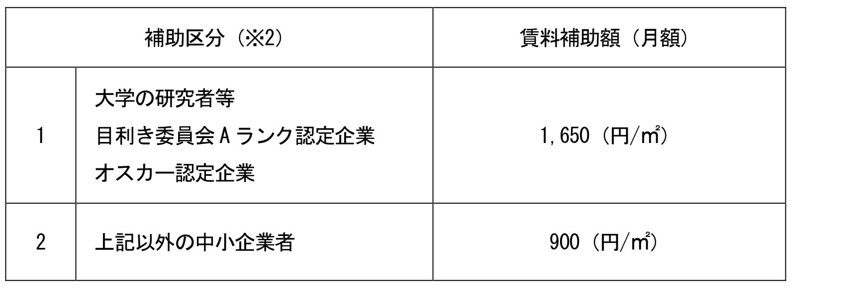 (※2)「目利き委員会Aランク認定」「オスカー認定」は優良企業等を認定する京都市の制度です。補助区分の適用・交付期間・補助額等は『京都市新事業創出型事業施設活用推進事業補助金交付要綱』に基づき決定されます。