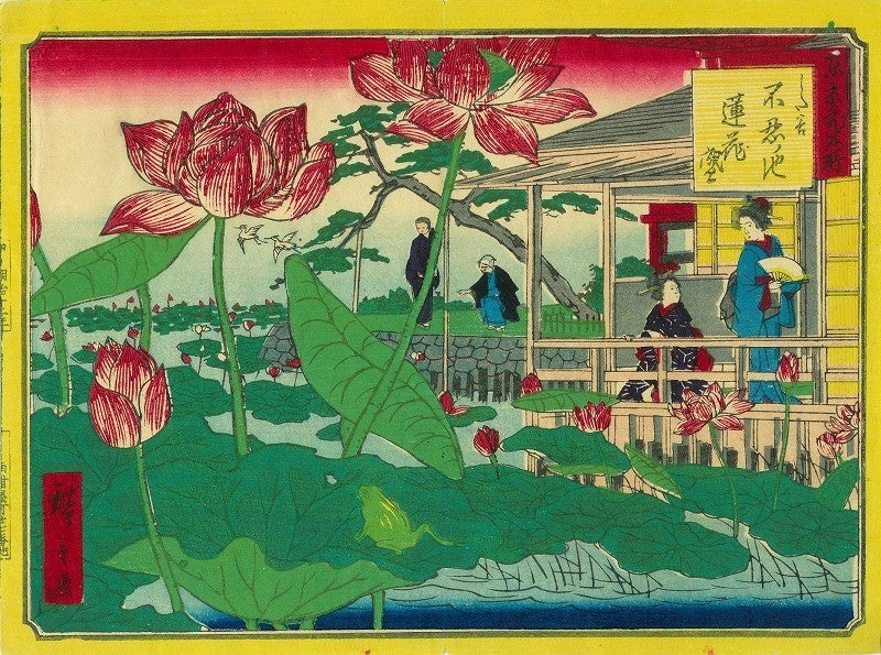 将軍家菩提寺の一つであった寛永寺の伽藍や子院が立ち並ぶ上野の山と、その麓に広がる不忍池は、信仰の場であると同時に、江戸の人々の憩いの場でもありました。大きな転機となった幕末の戊辰戦争では、寛永寺境内は彰義隊と官軍との戦場となり、本堂をはじめ建物が焼失し、その敷地の多くが明治新政府の管理下に置かれました。 明治6年(1873)上野の山は、浅草や飛鳥山、深川、芝とともに日本初の公園として指定されます。しかし、他の公園とは異なり政府管轄下の上野は、政府による祭典を催す場としての役割も担いました。公園内では、敷地整備と並行して、江戸時代からの名料亭「八百善」や、東京の西洋料理店を代表する「精養軒(上野精養軒)」が店を構え、明治9年(1876)5月9日には明治天皇臨席のもと開園式典が執り行われました。その後、海外要人の歓迎式典や各種博覧会の開催のほか、明治14年(1881)には園内でガス燈が灯り、明治15年(1882)には博物館・動物園が開園し、知識や文化に触れる空間ともなりました。明治12年(1879)に復興した寛永寺やその子院、被害を免れた上野東照宮などは、公園となった後も参拝する人々を集めました。一方、明治以降も変わらないものとしては、上野の山の桜と不忍池の水辺が挙げられます。季節に合わせて人々が行楽のために訪れ、その賑わいは現在でも感じることができます。