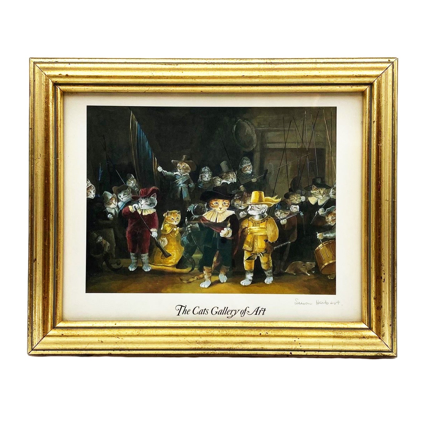 谷中の猫専門雑貨店「TIM&SAILOR」から、イギリス人の女性アーティスト、スーザン・ハーバートのビンテージ・プリント画をご紹介。レンブラントの名作「夜警」を擬人化した猫達が可愛らしい作品。1990年のロンドンの個展で販売された直筆サイン入りプリント画は、一点もののレアなアイテムです。