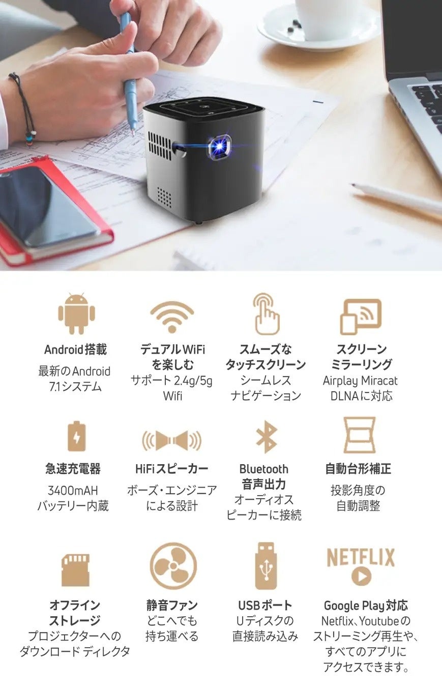 2WAYプロジェクター&モバイルバッテリーで便利!【超小型/30〜100インチの大画面/内蔵スピーカー/モバイルバッテリー/3400MAHバッテリー/LEDライト】