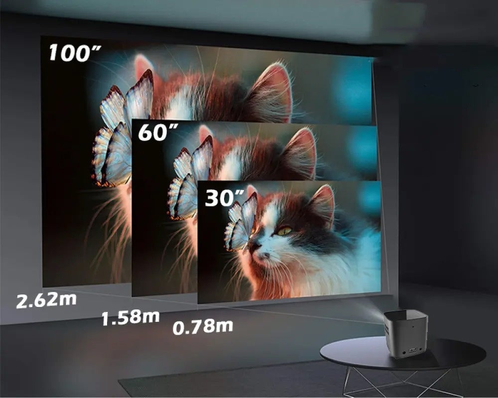 ミニプロジェクターでありながら100インチまでの大画面で投影でき、手軽に迫力のある映像を楽しめます!