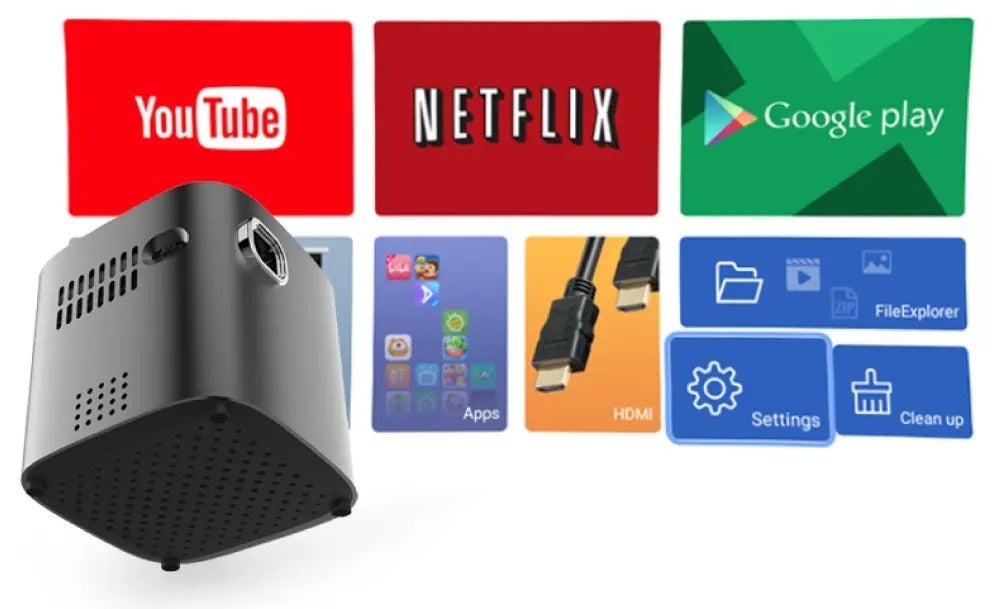本体にスピーカーが内蔵されているので、GeeProだけでも、すぐに映画を楽しむことが出来ます。また、Bluetoothで他のワイヤレススピーカーと接続することで、迫力のサウンドで映画やミュージックビデオを視聴できます!