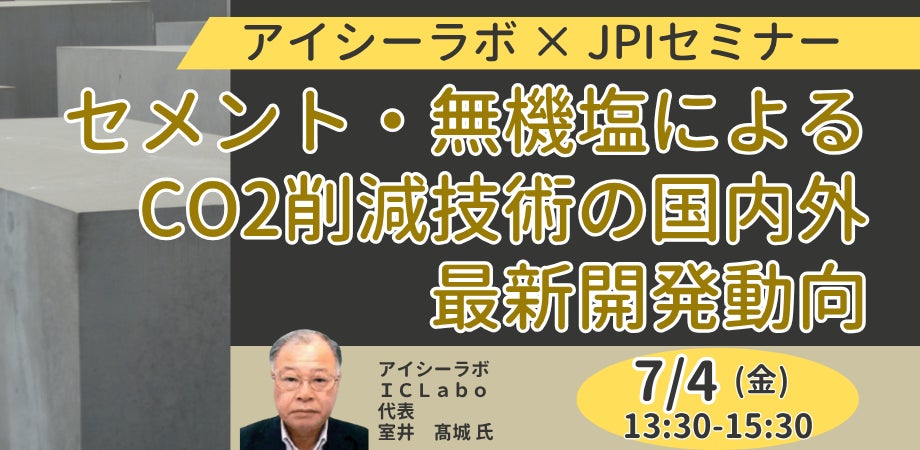 【JPIセミナー】「セメント・無機塩によるCO2削減技術の国内外最新開発動向」7月4日(金)開催