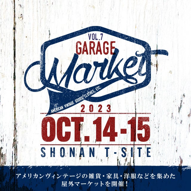 湘南T-SITE(神奈川県藤沢市)は2023年10月14日(土)、15日(日)に、アメリカンヴィンテージをテーマにした屋外イベント「GARAGE Market VOL.7」を開催します。“湘南の大人たち”のライフスタイルを刺激するような雑貨、家具、洋服、アクセサリー、レコード、食品などのお店が29店集まります。秋風が気持ちいい季節、ここにしかないヴィンテージ品との出合いをどうぞお楽しみください。
