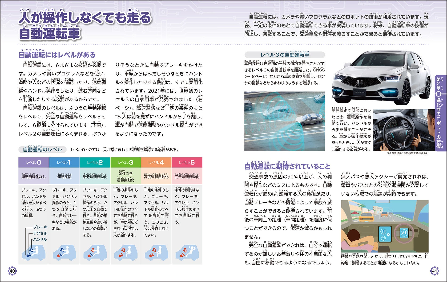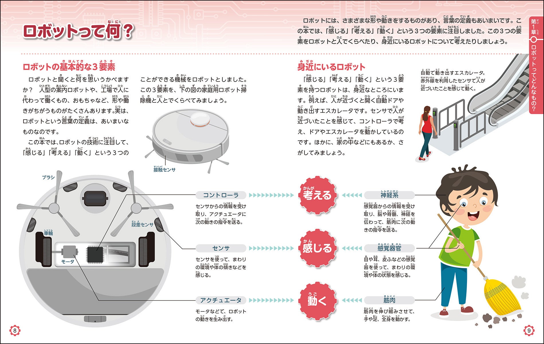 本書では、ロボットのなりたちから、現在各方面で活躍するロボット技術の紹介、そして今後の発展について、写真や図版を大きく配した誌面で解説。