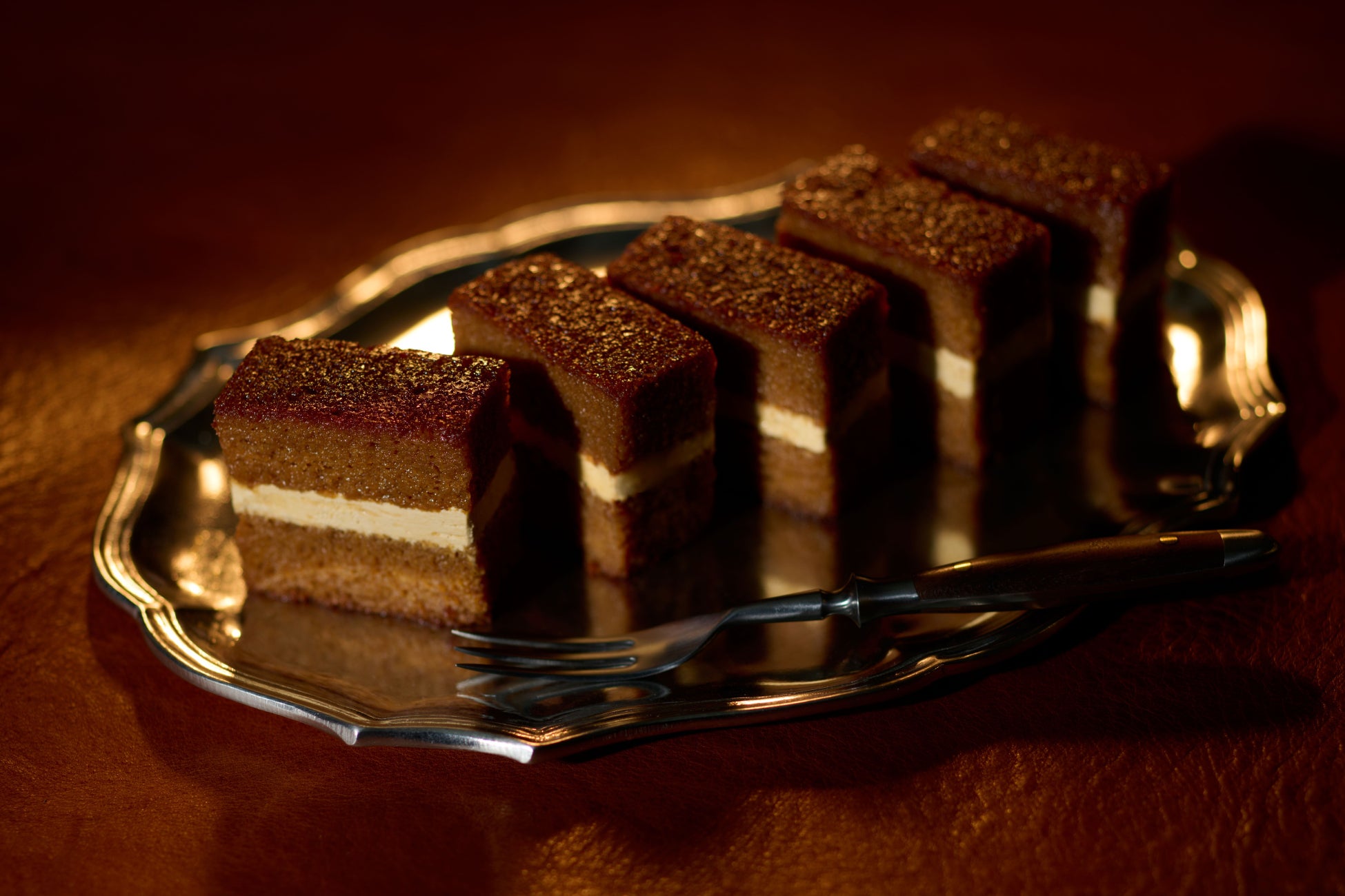オリジナルレシピで丹念にローストしたビターキャラメルとシナモンで仕立てた生地に、潤沢にコニャックとアルマニャックを含ませ、バニラの薫りを纏わせたフランス製造の発酵バターのクリームをサンド。その華やかな薫りが心までも揺さぶる、記憶に残る一品となっております。