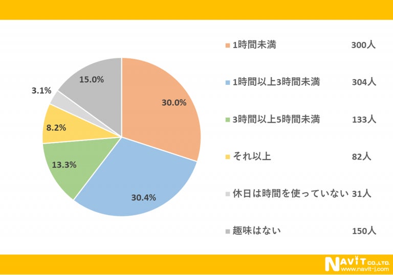 質問:休日、趣味にどれくらいの時間をかけていますか?(対象:1,000名)