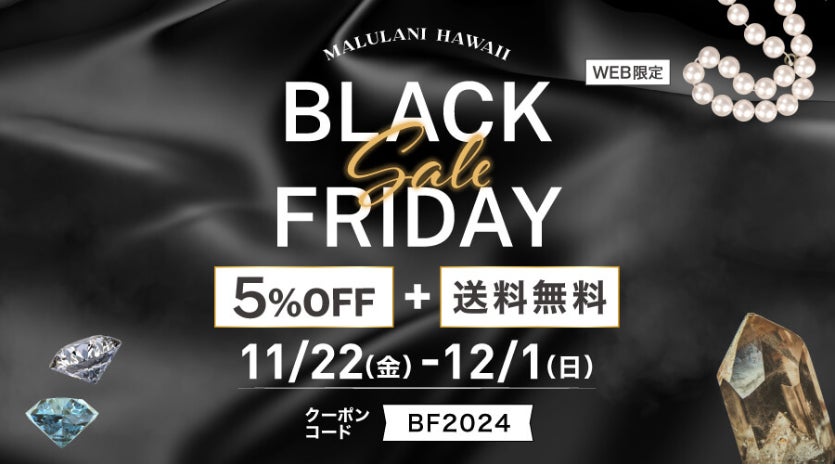 おしゃれも願いも叶える、ハワイ発パワーストーン、マルラニハワイにて10日間限定のブラックフライデーセールを開催いたします。開運アイテムのご購入にぜひこの期間をご利用ください。