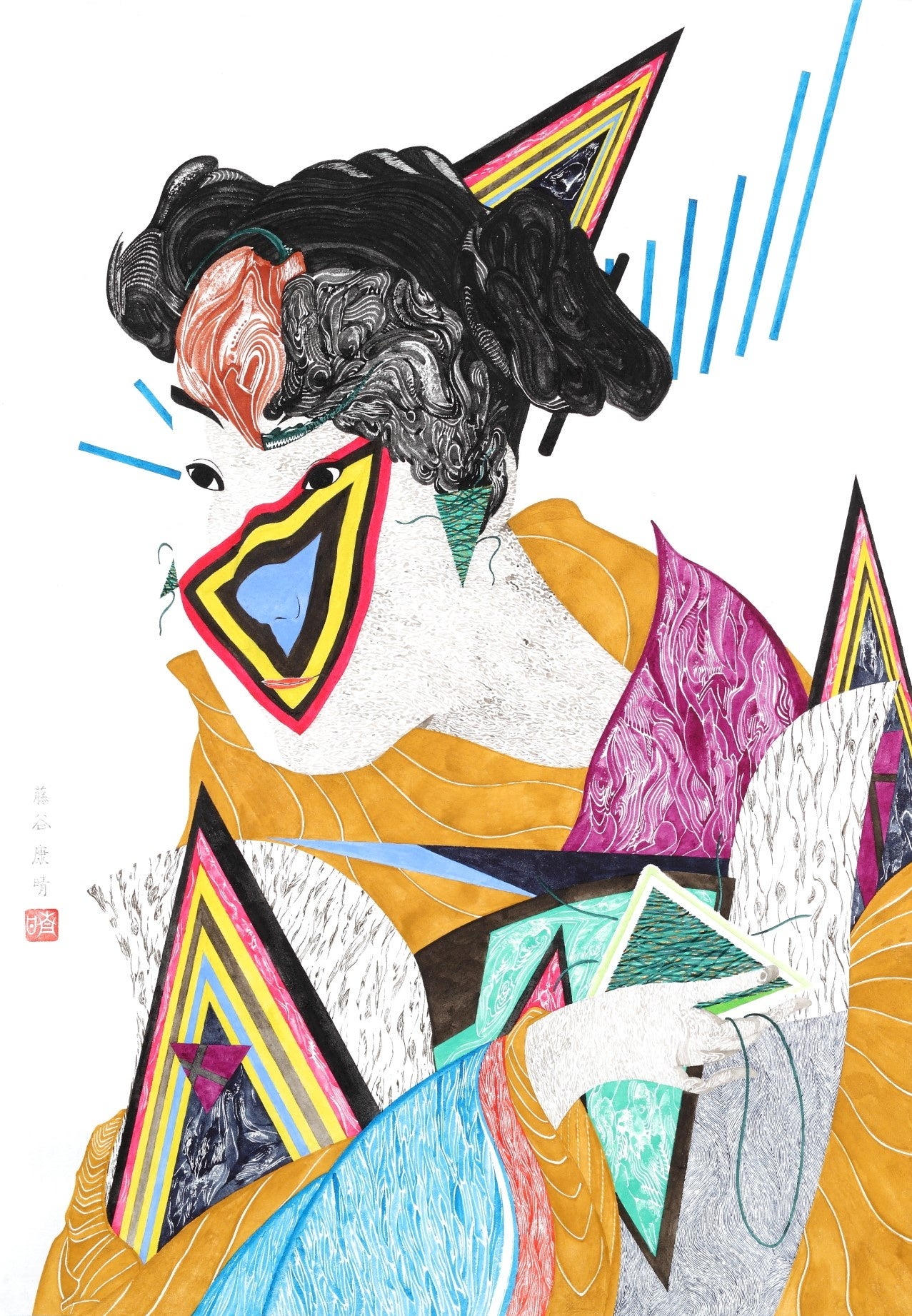江戸の文化で花開いた浮世絵の一つでもある役者絵のスタイル、大首絵をなぞる事で生まれた藤谷康晴(ふじや やすはる)氏独自の絵画シリーズである「ハイパー大首絵シリーズ」。藤谷康晴氏は北海道を拠点に制作を続ける作家です。江戸時代の歌舞伎小屋で初お目見えの顔見せ公演がある11月、シーズンで最も華やかで祝祭の雰囲気に包まれる暮れの時期に、藤谷康晴氏のハイパー大首絵シリーズの中から「グリッドヒューマンシリーズ」を中心とした作品数点を展示いたします。