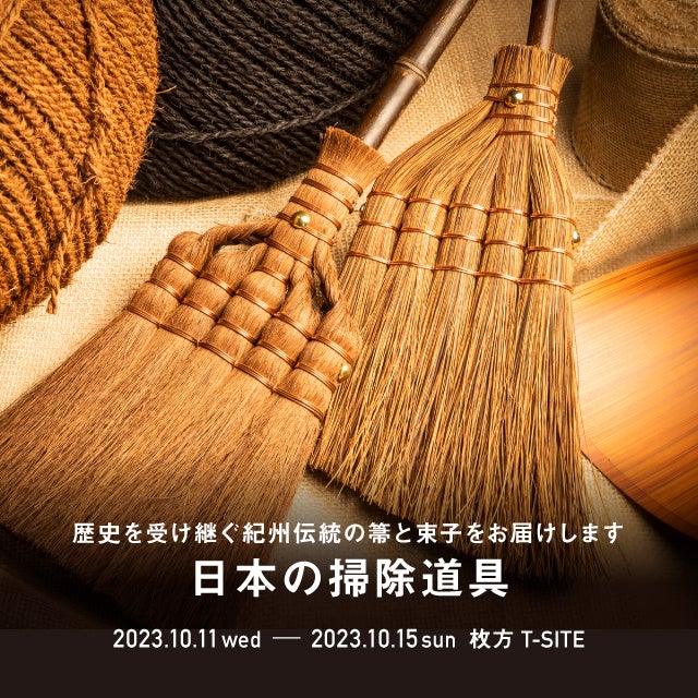 枚方T-SITE(大阪府枚方市)は、2023年10月11日(水)から10月15日(日)まで、「日本の掃除道具フェア ~歴史を受け継ぐ紀州伝統の箒と束子~」を開催します。和歌山県を拠点に、伝統を守りながら日々、ものづくりを進化させている2社の職人が一点一点、丁寧につくる箒(ほうき)や束子(たわし)などをご紹介します。期間中、職人が箒づくりの実演をするほか、週末には束子づくりのワークショップも実施します。日本人が昔から愛用してきた掃除道具を、毎日の暮らしにぜひ取り入れてみませんか。