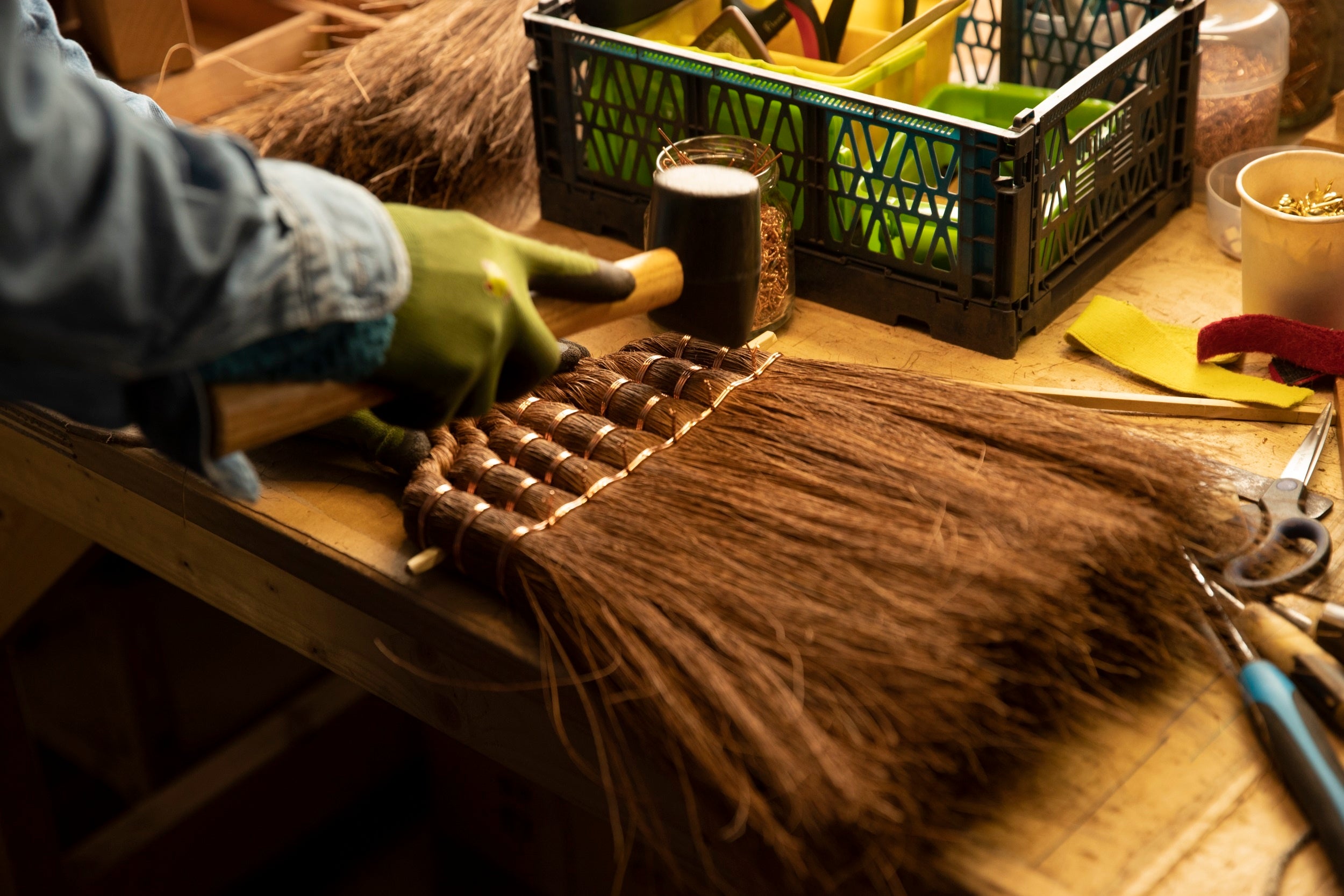 棕櫚(シュロ)製品を70年以上、作り続けるなか、2021年に箒の新ブランド「Broom Craft」をスタート。歴史ある箒の作り方をもとに、職人の手により新たに生み出された独自の製法で作っています。職人一人一人の発案で、また、新たに参入したメーカーならではのチャレンジで、時代のニーズに合い、長年愛用していただける製品を生み出すことを目指しています。