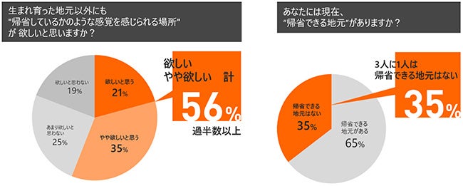 ■生まれ育った地元以外に "帰省しているかのような感覚を感じられる場所" が欲しい・やや欲しいと答えた人は56%、うち39%の人はその気持ちがコロナ禍で強まったと回答。