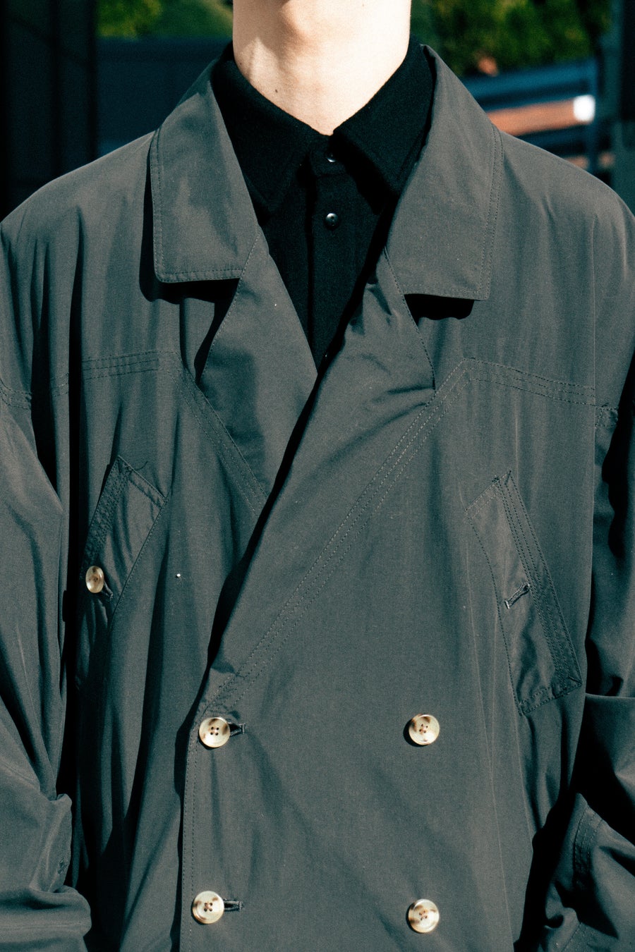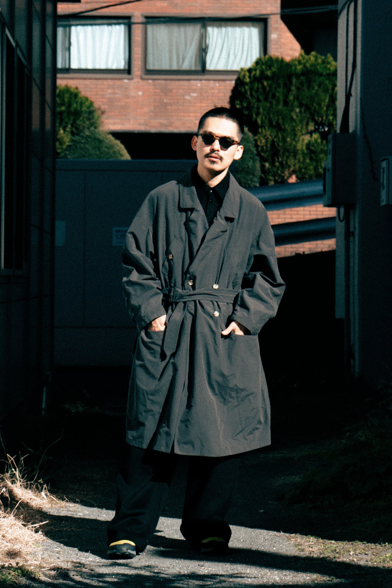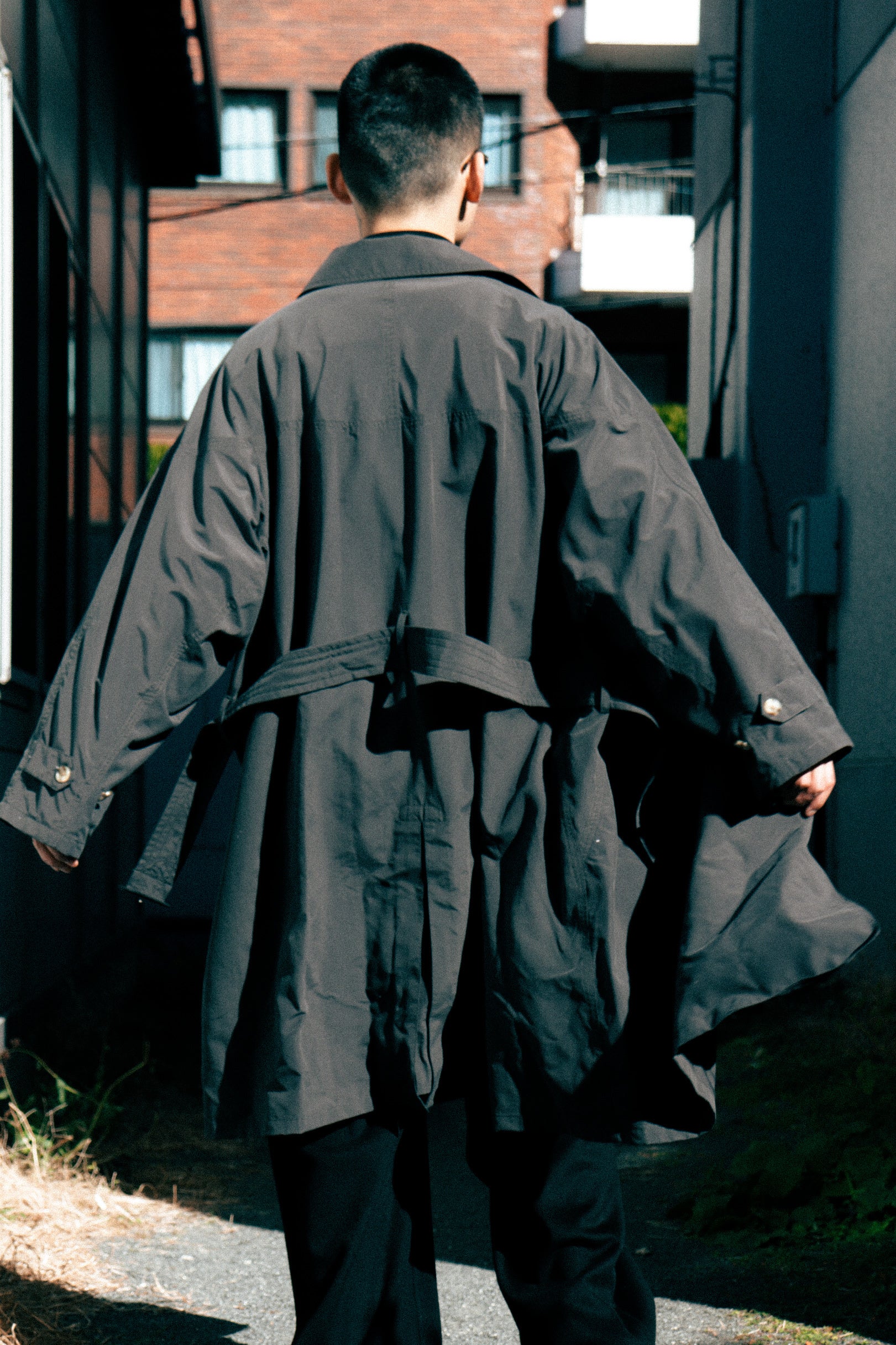 一見するとオーバーサイズのトレンチ?のような、はたまたダブルのチェスター?のようなシルエット。