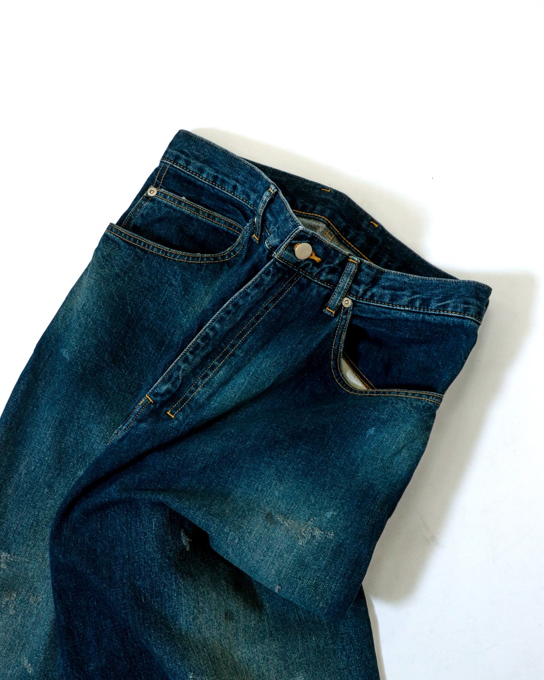 ANCELLMが得意とする加工は、奥行きとグラデーションの良い塩梅を表現するのに何度もテストを繰り返し、濃色を残しながらも着用を重ねていく事でどんどん色合いや風合い そして深みすら増していく、まさに「経年変化を自らデザインする」為の唯一無二の一本に仕上がっている。