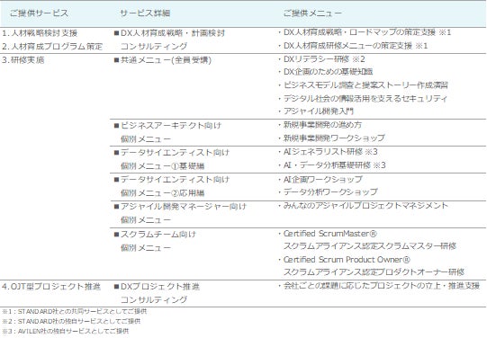 <DX人材育成サービスメニュー>