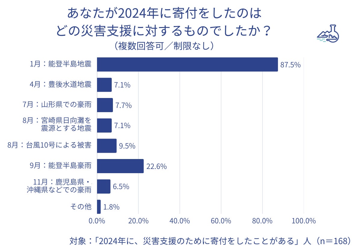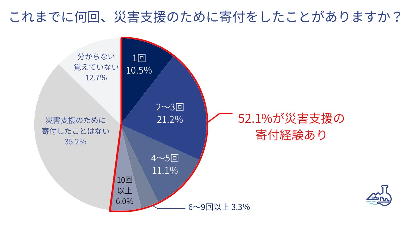 1) 災害支援寄付経験者が52.1%と半数以上。2024年の寄付で最も多かったのは能登半島地震
