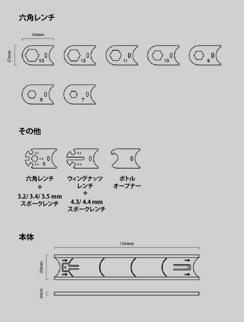 【六角レンチ/ウィングナットレンチ/ボトルオープナー/ポーチ付き】
