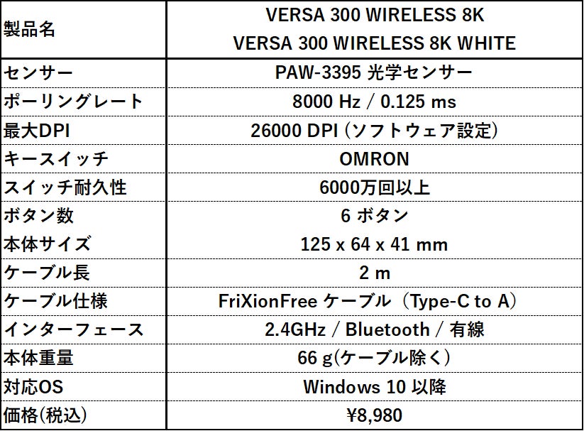 【VERSA 300 WIRELESS 8K WHITE】