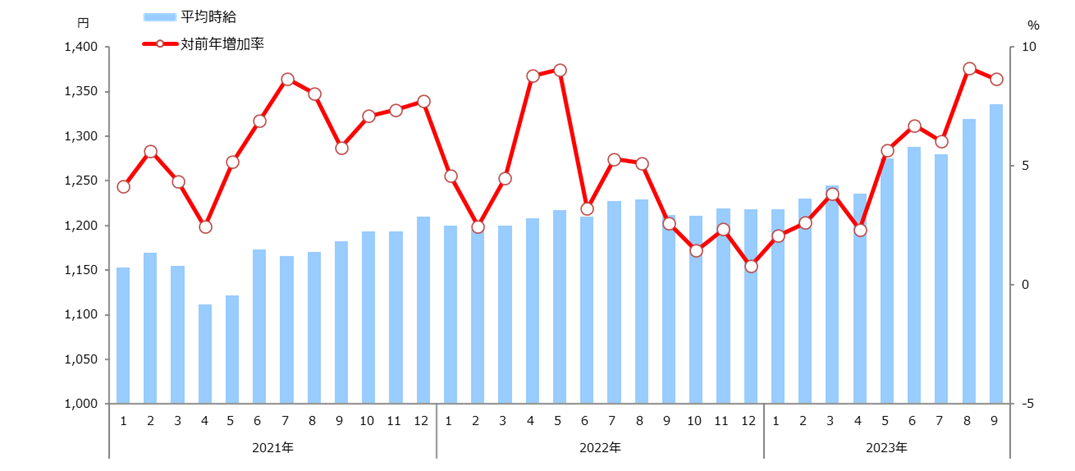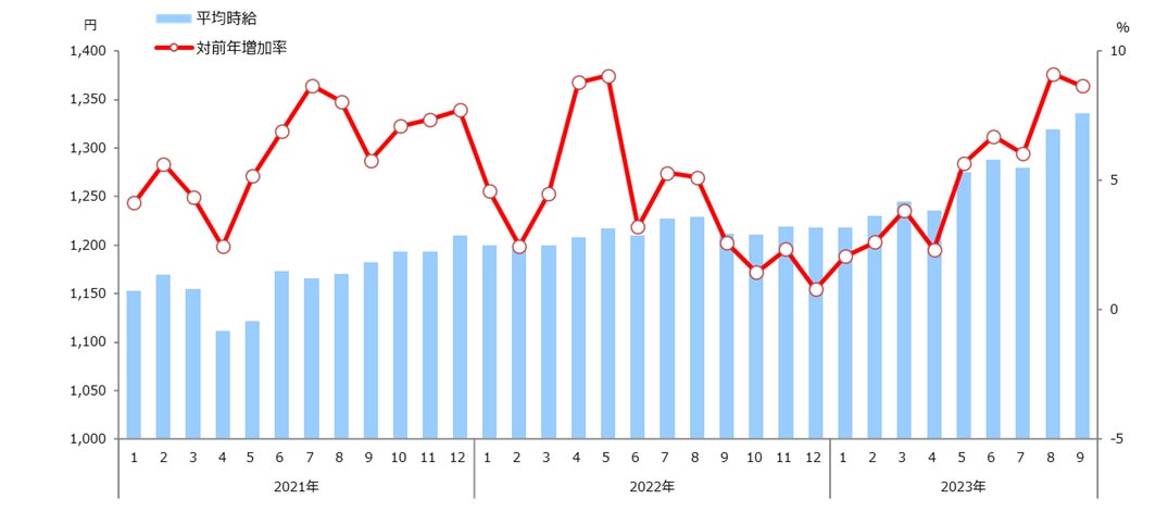 2023年9月度 アルバイト平均時給調査 全国の平均時給は1,336円 2ヵ月連続 過去最高時給を更新