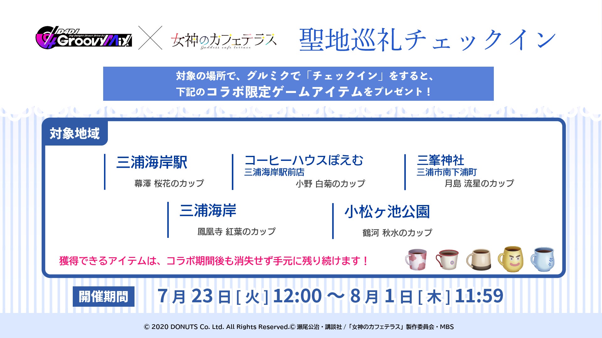 『女神のカフェテラス』コラボを記念し、聖地巡礼チェックインキャンペーンを行います。