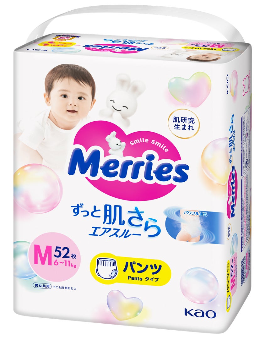 花王株式会社の「メリーズ」ブランドは、2023年4月1日「メリーズ 素肌さらさらエアスルー」を改良し、「メリーズ ずっと肌さらエアスルー」としてリニューアル発売いたします。テープタイプとパンツタイプ、計7アイテムをラインアップします。