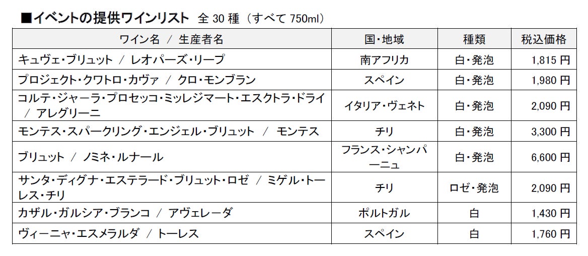 本イベントでは、「音楽とワイン」を共通のテーマに、季節ごとに異なるワインやフードの魅力をご提案します。今後も当社は、若い世代をターゲットにしたイベントの開催などを通じて、ワインをより気軽に楽しみ、身近に感じていただける場を提供し、ワイン文化のすそ野の拡大に努めます。