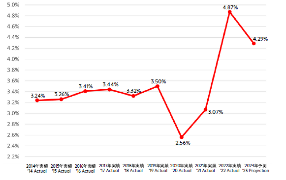 現在、世界的なインフレが進行する中、米国による金融政策は景気の動向や為替相場を大きく動かし、日米間のビジネスにも大きな影響を与えています。米国においては、足元は大企業による大規模なリストラが相次ぐ一方で、大量の離職者が発生した2020年以降、各企業で慢性的な人材不足の状況にあったことから賃金は顕著な上昇傾向にあります。
