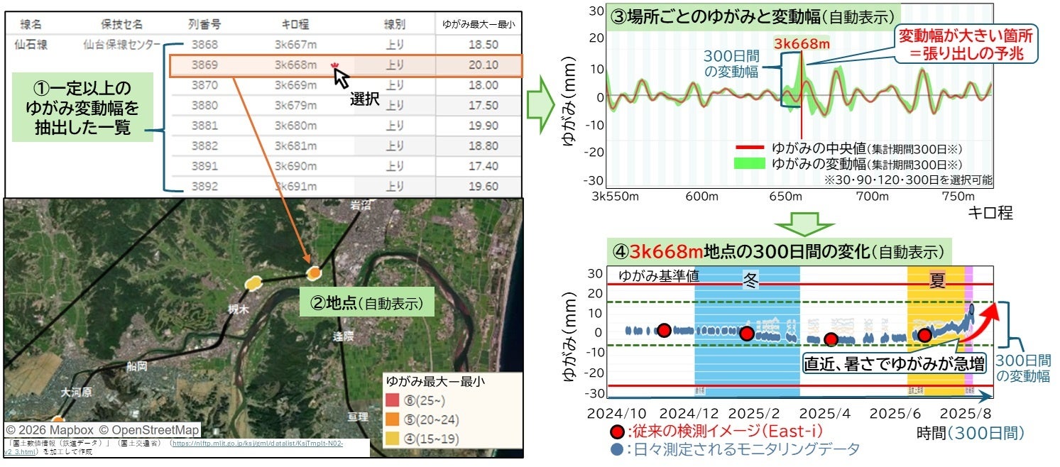 線路メンテナンス用分析プラットフォーム「Viz-Rail」の新機能の実装~モニタリングデータによりレール張り出し現象の予兆を把握~