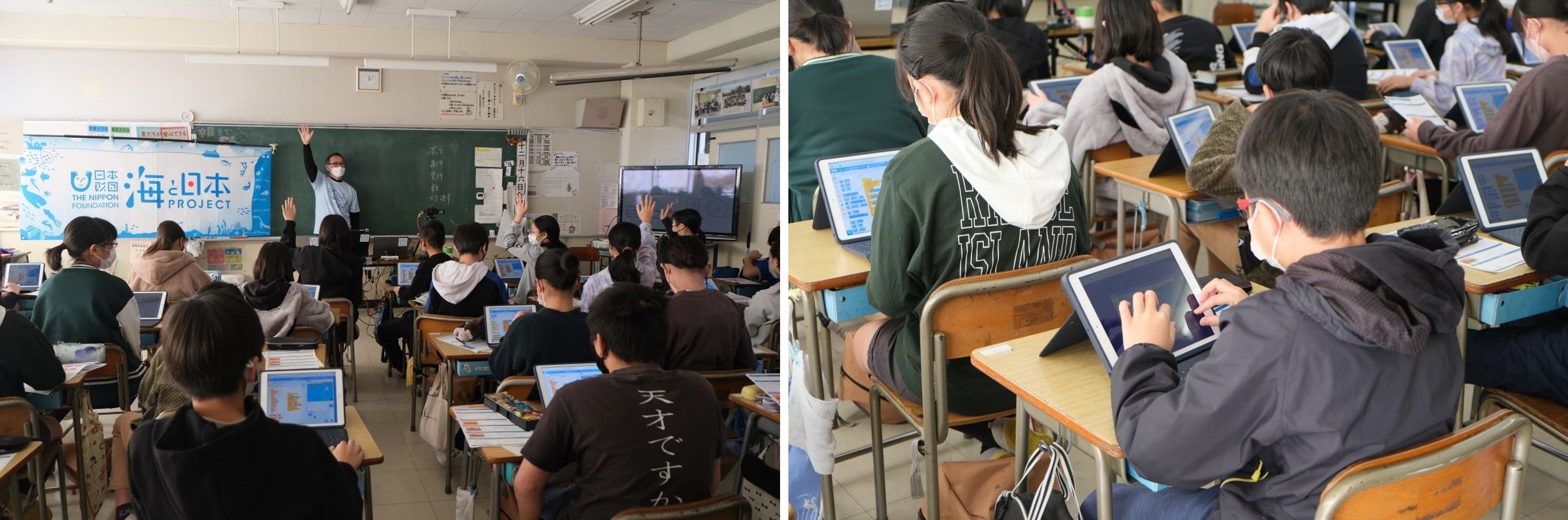 今回の授業では仮想の海で海洋プラスチックごみを回収しましたが、現実世界でも実際に似たような取組がいくつも行われていることを紹介しました。身近で便利なプラスチックを無責任なかたちで扱われてしまうと、豊かな海の自然に悪影響が及んでしまいます。