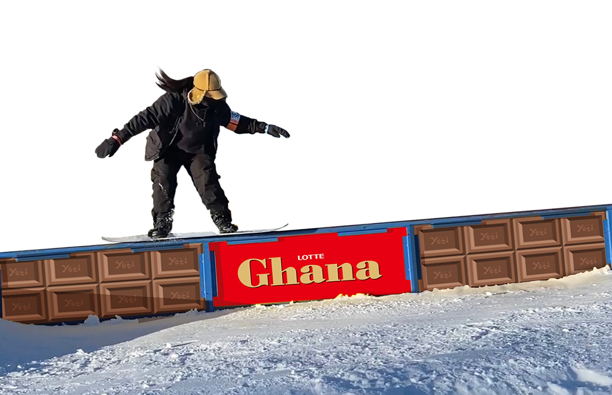 スノーパーク イエティでは、様々な形状のアイテムを使ってジャンプやスライドなどが楽しめるパークエリアに、ガーナチョコレートの板チョコデザインでラッピングされた「レール」が登場するほか、バレンタインの2月14日にちなみ、全長21.4mのコースを長さ2.14mの巨大板チョコバナーを持って二人で滑走するナイターイベントを開催いたします。また、レストランではチョコと相性抜群のマシュマロを挟んだ「ガーナスモアパンケーキ」をお楽しみいただけるなど、盛り沢山の内容となっております。