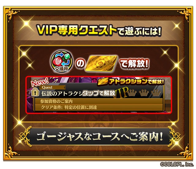 今回のイベントを進行していくことで「$$$コイン」を獲得できます。「$$$コイン」を集めてVIPカードと交換することで、VIP専用クエストを解放することができ、通常のクエストにはないゴージャスな体験をすることができます。