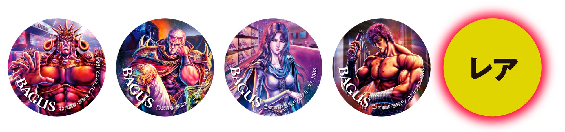 左からラオウ、サウザー、ユリア、ケンシロウ、レアバージョン