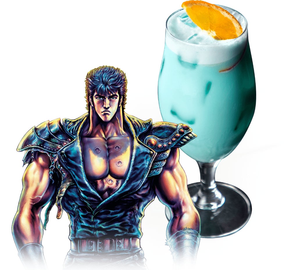 ケンシロウの逞しい肉体をイメージし、筋肉の合成に有効な必須アミノ酸を多く含んでいると言われるホエイプロテインをベースにしたプロテインカクテル。ケンシロウが放つ青いオーラをブルーキュラソーで演出。アルコールが苦手な方にはノンアルコールドリンクもご用意しております。