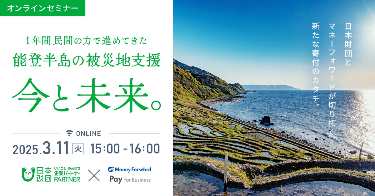 株式会社マネーフォワードは、2025年3月11日(火)に日本財団と共同で、企業の被災地支援に関するオンラインセミナーを開催します。
