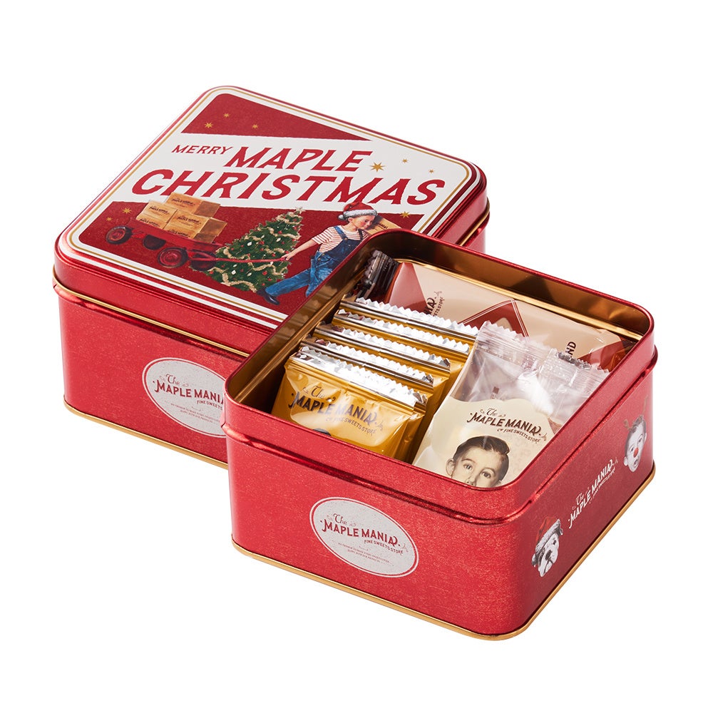 毎年大人気の限定缶「メープルクリスマス缶」が、昨年よりもさらに煌びやかになって登場します!人気商品3種を詰め合わせ、ザ・メープルマニアの世界観を詰め込んだ、見た目にも華やかな一品です。