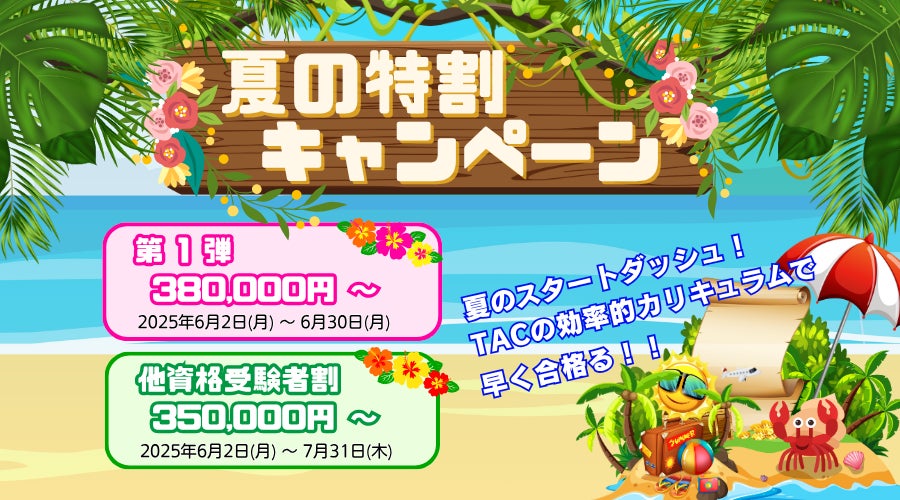USCPA試験対策講座を展開しているTAC株式会社(東京都千代田区、代表取締役:多田敏男)は、6/2(月)に夏の特割キャンペーンを開始します。